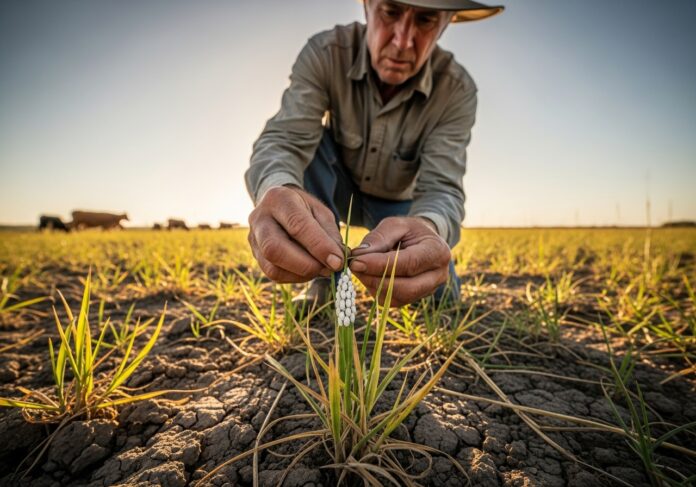 But let’s be clear: the real defense starts with the people of Texas. Ranchers, hay producers, and landowners are the eyes and ears on the ground. They know when something is wrong with their grass. The pasture mealybug hides low in the plants and under debris, making it hard to see early on. But signs like yellowing, purpling, stunted growth, and dying grass patches mean trouble. If you see small white fuzzy clusters on your plants, it’s time to act.